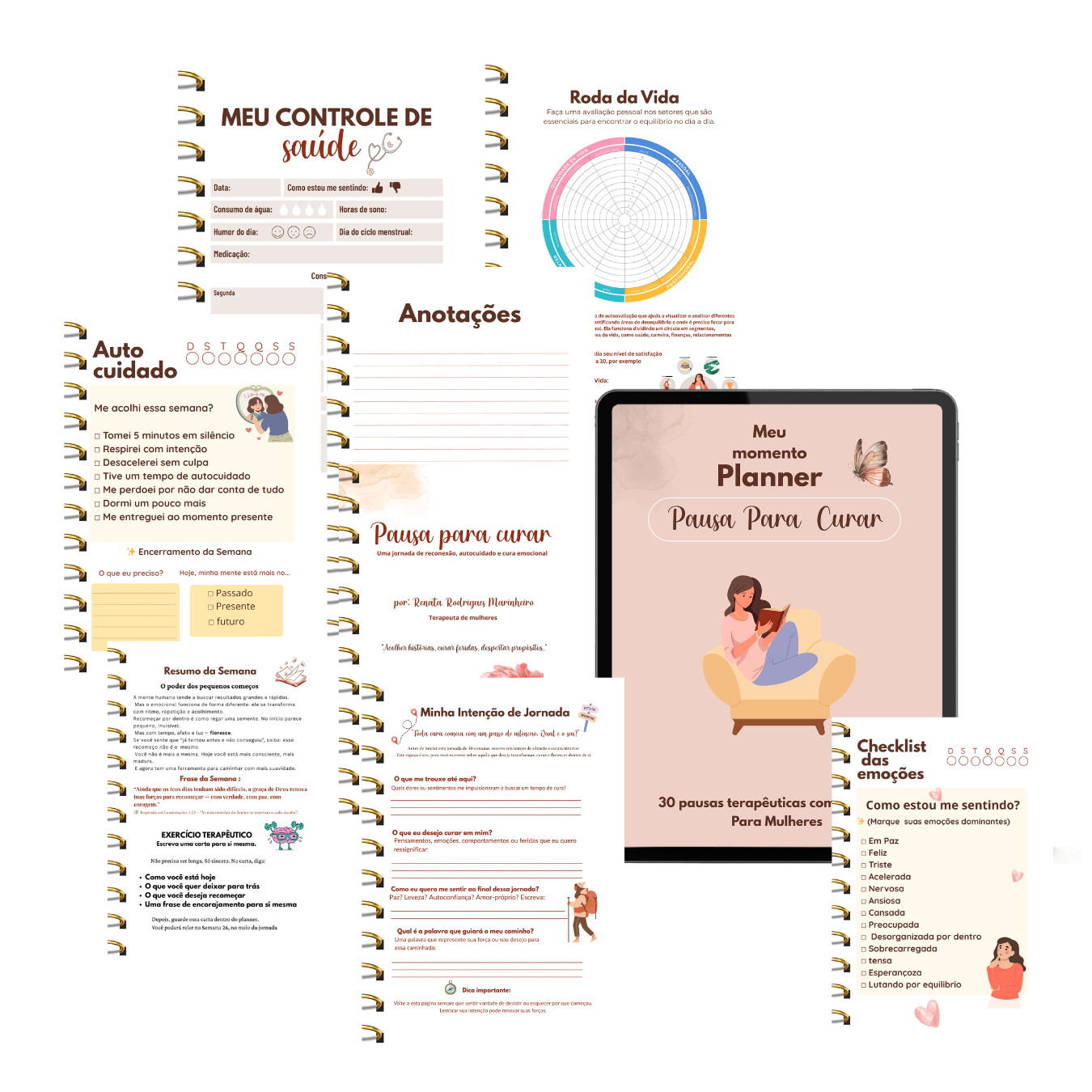 Esse planner é para mulheres e mães atípicas que desejam resgatar o equilíbrio emocional, viver com mais consciência e fazer do autocuidado uma prioridade — mesmo em meio ao caos e a rotina corrida.”